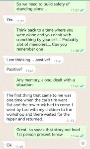 The other day travelling home by train and ferry I had this conversation with a client on whatsapp about her anxiety. I used the Star Matrix approach to find a star memory of power and confidence and helped her access that energy and embody that state. So cool how easily Star Matrix can help. Here’s our chat shared with permission for education and inspiration.