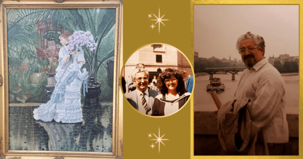 I still have a painting he made for me as a 25th birthday gift, 37 years ago. It’s a copy of The Bunch of Lilacs by Tissot, painted from a postcard.